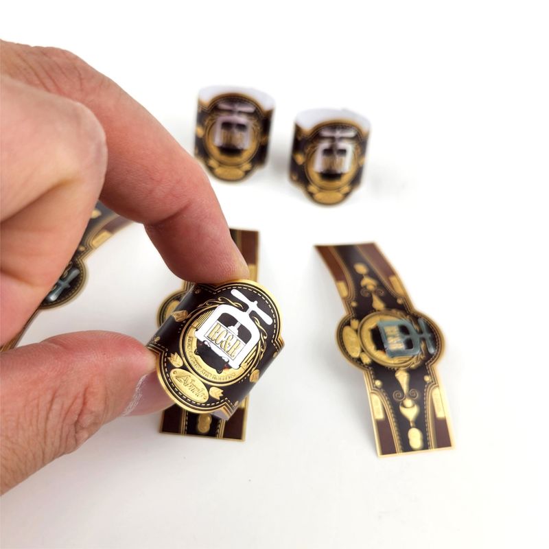 Hochwertiger Zigarrenring-Aufkleber mit geprägtem Goldfolien-Logo, Zigarrenetikett